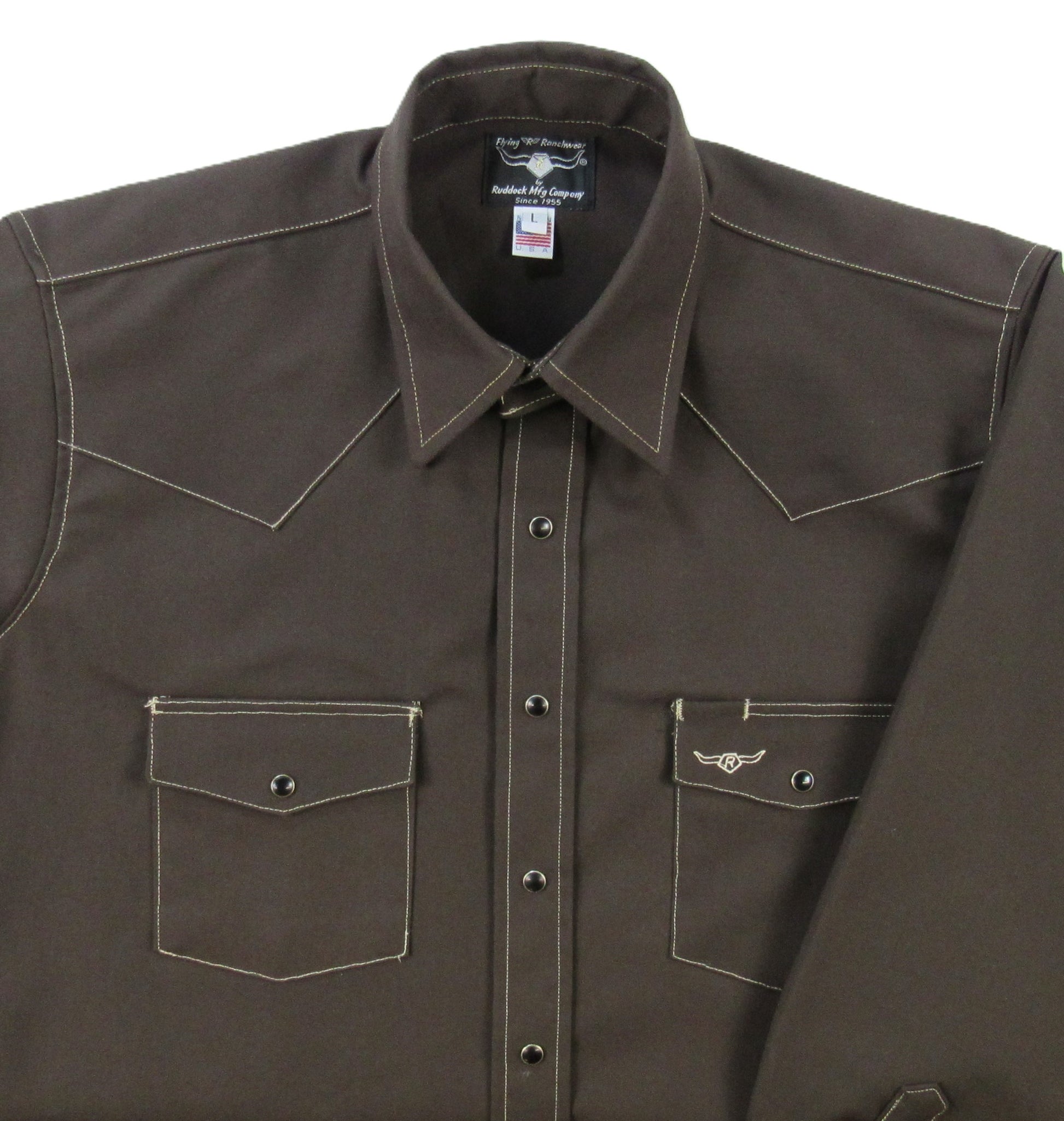 Flying R Ranchwear - Rigid Canvas Chore Shirt - Mocha Brown - Long Sleeve - Snaps