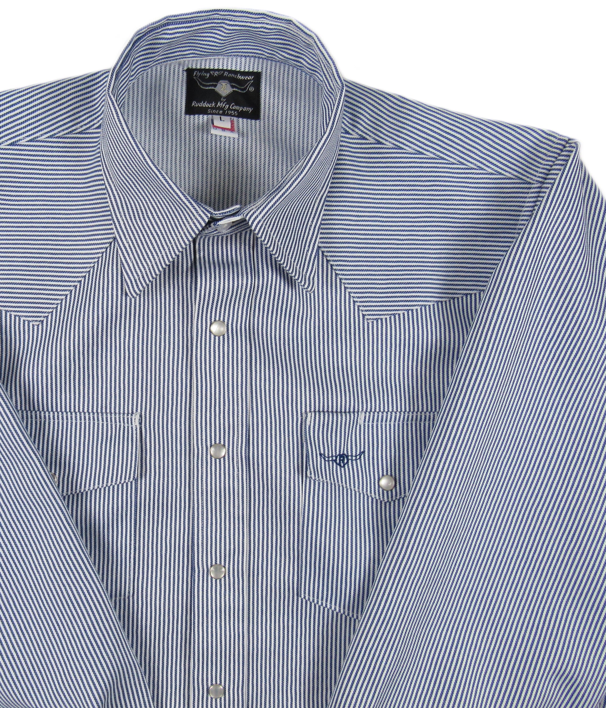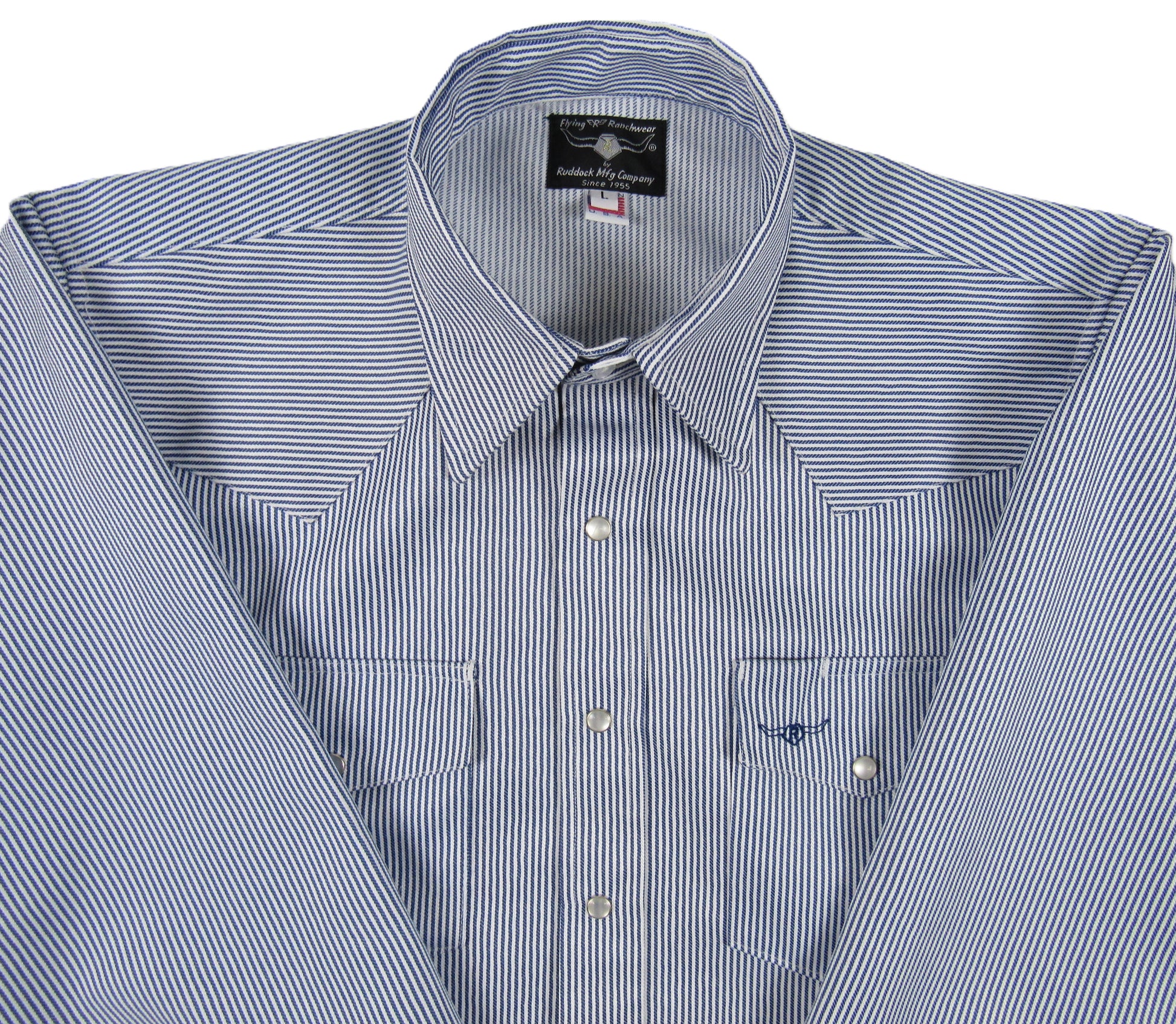 Clearance - Flying R Ranchwear - Denim Hickory Stripe - Blue & White - Long Sleeve